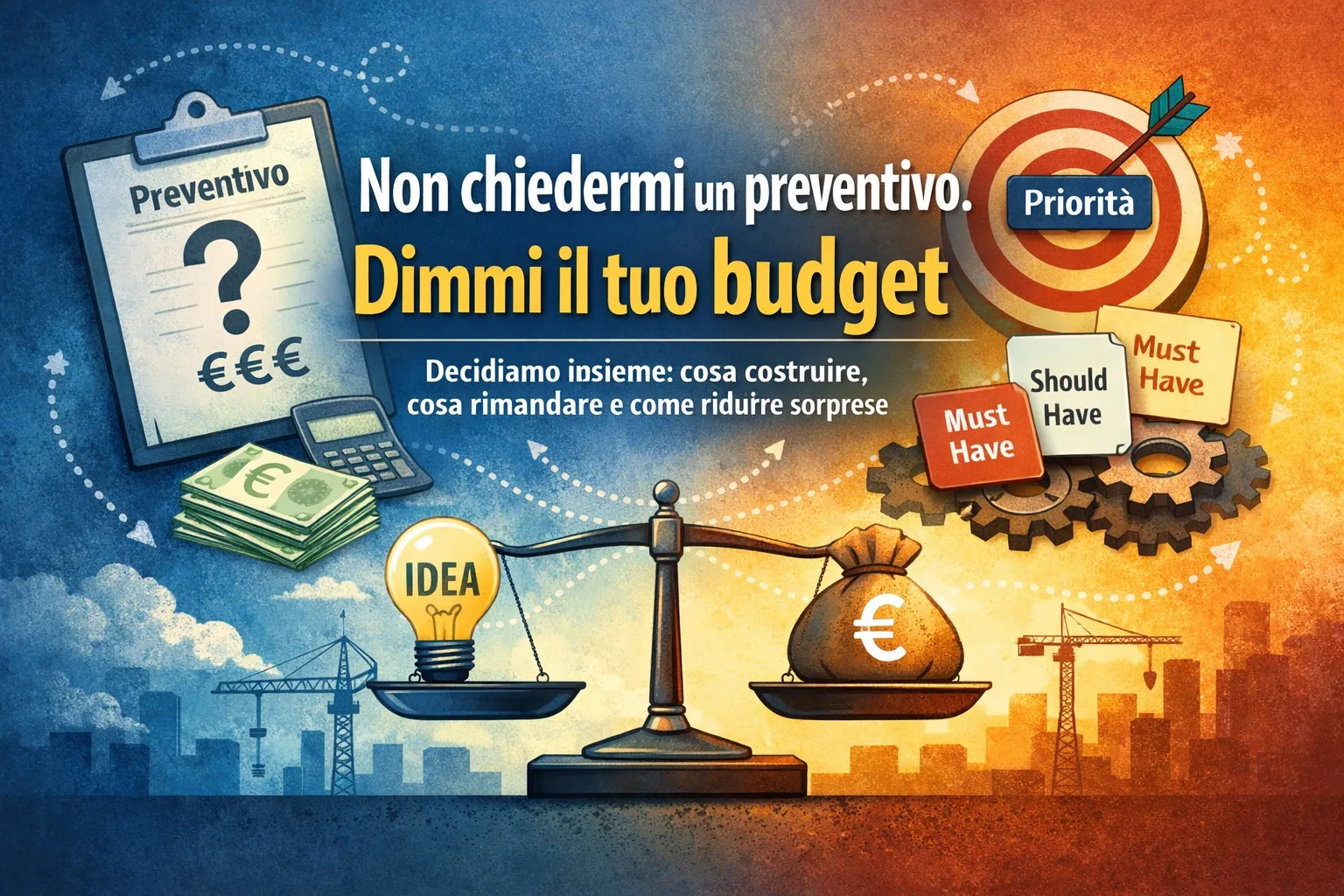 Se invece mi dici quanto hai da investire, la conversazione diventa più utile: possiamo decidere insieme cosa costruire prima, cosa rimandare, quali trade-off accetti e come ridurre il rischio di sorprese.