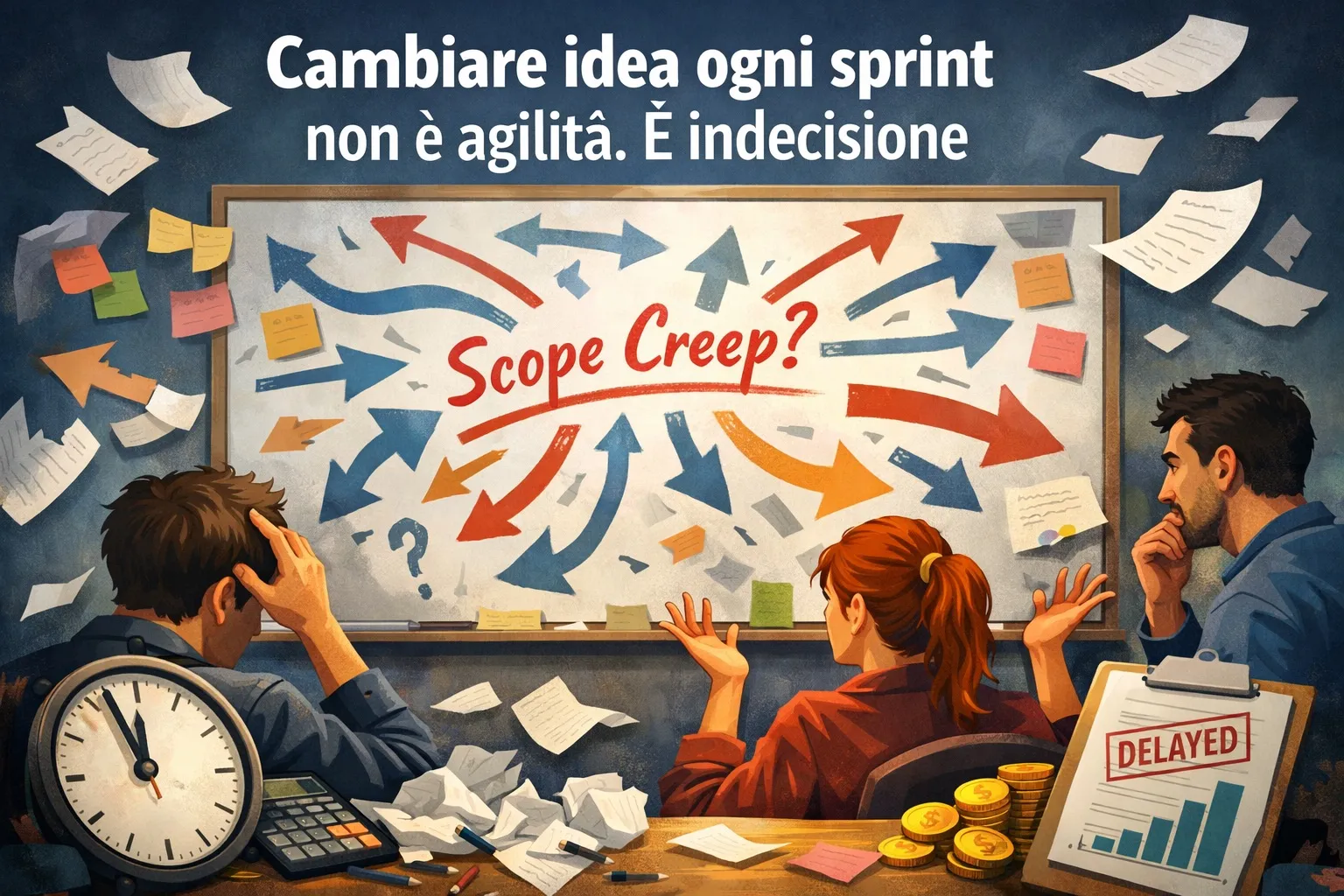 "Tanto siamo agili, possiamo cambiare." Questa frase, ripetuta sprint dopo sprint, spesso nasconde lo scope creep in un progetto software: la difficoltà di prendere decisioni e mantenerle nel tempo.